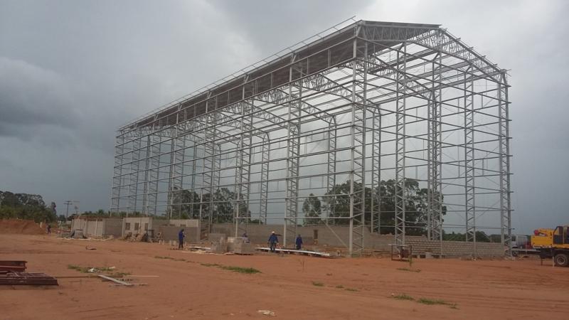 Após a preparação do terreno, é realizada a montagem da estrutura metálica. Os componentes pré-fabricados são posicionados e fixados de acordo com o projeto, levando em consideração o dimensionamento realizado previamente.